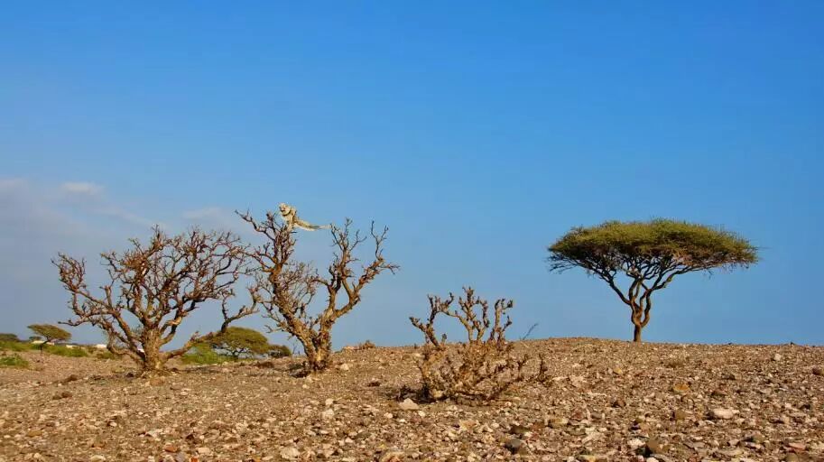 吉布提的海岸,零落的树散步在岩石和沙滩上。他们把根扎的很深很广,为防止水分蒸发,叶子长到最小。他们经历过岁月的沧桑,即使很小的一棵,也有了很多年的成长。在那片贫瘠的土地上,他们依然挺拔的展示着,风塑造的曲折美。